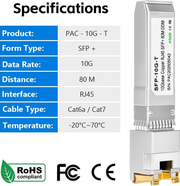 However, it is essential to consider the drawbacks associated with this module. While the 10gtek 10G SFP+ to RJ45 is generally effective, it requires Cat6a or Cat7 cables to achieve full 10Gbps speeds, particularly over long distances. This requirement may necessitate additional investments in cabling infrastructure, which could offset some of the initial cost savings associated with the module itself.